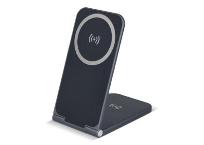 The Xoopar Zero is a super-slim 2-in-1 charger for your iPhone (15 W) and AirPods (5 W). Compatible with MagSafe and features an adjustable viewing angle, ideal for video calling. Made of recycled aluminum: stylish, functional and durable all in one.