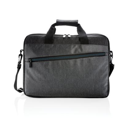 This 900D laptop bag fits up to 15" laptops in the main compartment and contains a front zipper pocket for accessories. Detailed with reinforced handles and a padded shoulder strap that offers a versatile carrying option. PVC free.