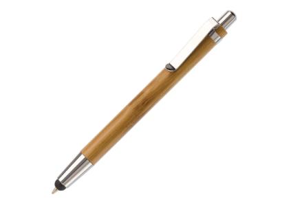 A ball pen made from a bamboo material with a metallised pusher, tip and metal clip. The pen comes with a stylus and a Jumbo refill with black writing ink.