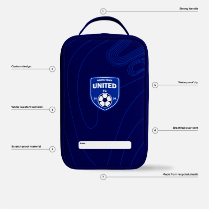 The Bando Shoe Bag (36 x 22cm) is made from durable recycled 900D materials, offering a scratch-proof, splash-proof, and customisable solution for sports teams and event gifting. Designed to keep footwear protected and organised, it’s ideal for football, rugby, cricket, golf, and more. The easy to grab handle, air vents, water-proof zip and generous branding space make this shoe bag a practical and sustainable choice for athletes and corporate gifting alike. Each Bando Sports product sold collects 1kg of ocean-bound plastic waste to improve marine areas and support livelihoods in coastal communities.