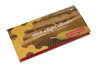 Craft kit for a candle made of pure beeswax in a self-designed DIN long folder. Four-color inside and outside printed, folded and pinned. Incl. handicraft instructions and inserts with safety instructions.