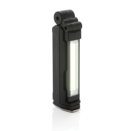 Functionality, and design all come together in this re-chargeable high performance work light made with RCS certified recycled ABS plastic. Total recycled content: 25% based total item weight. RCS certification ensures a completely certified supply chain of the recycled materials. The rainproof work light uses a re-chargeable A-grade 2000 mah lithium battery so no need to replace the batteries. Simply re-charge via your USB socket and the included charging base. The work light comes with 600 lumen COB light en 200 lumen LED light. With 4 modes: LED, COB, COB red, COB emergency flashing. The light can be completely turned around 360 degrees. With magnet and hook at the bottom. With type C port for re-charging and USB A port to charge mobile devices. Operating time on one charge: 3 hours.