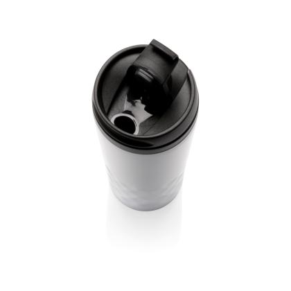Fashionable stainless steel tumbler with geometric details. Inner body is made out of plastic. Handwash only. Content 300ml.