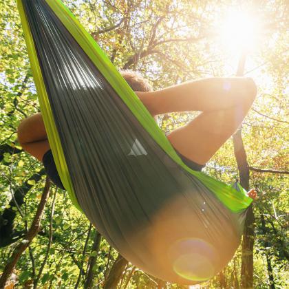 Just hang out – and it's easier than ever before! This summer, no one is coming to HangOver. The ultra-light travel hammock made of breathable nylon fabric passes. Because this ingenious material is extremely load-bearing, ultra light and therefore super space-saving. Without wrinkles or tedious darning, the king-size hammock in a compact, sewn-on bag still fits in or on any backpack. The tree-friendly straps supplied allow for quick and easy mounting and hanging - whether on the tree or on the balcony railing. In a comfortable king-size size for maximum convenience, HangOver is one of the hottest outdoor gadgets this summer and the perfect advertising medium for your brand. Price incl. logo label on bag, available in many standard colors. - Available from 500 pieces also made of sustainable RPET nylon.