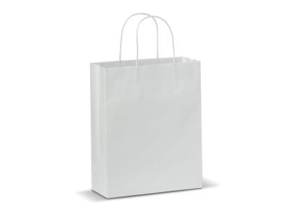 Middle sized matt paper carrier bag with handles made of twisted paper. The bag has an ecological look and is suitable as a giftbag. FSC certified.