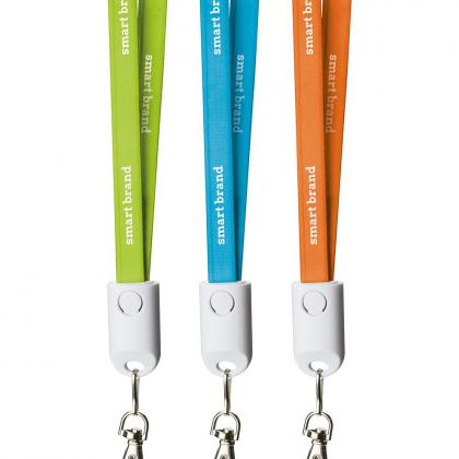 Customer loyalty with added value! Universally known and just as popular in the exhibition halls of this world, the lanyard has an undeniable status as a modern promotional item. What follows - you guessed it - is further development and an idea that is as simple as it is ingenious: Why not give the otherwise quickly useless collar another meaning through function? The Lacecyard 2in1 is just that – lanyard and lanyard. But also charging cables with USB to 2in1 plug for micro-USB and Lightning connectors. In this case, your logo on the nylon strap will remain much more sustainable in the eyes of your customers! Price incl. print on the nylon surface.