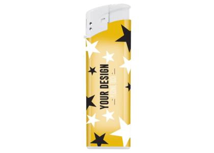 Electronic lighter with custom-made full-colour labelling. Refillable and child-resistant. Minimal order of 5.000 pieces.