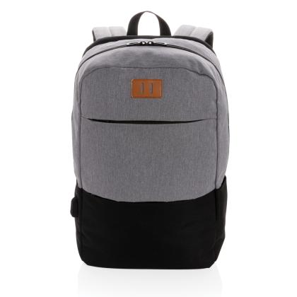 Carry all of your gear for work or travel inside this sleek laptop backpack. The laptop backpack is made from durable fabric and features a sporty, urban inspired design. This backpack includes a fully padded 15.6" laptop compartment and a front pocket to hold all your everyday accessories. The integrated USB port ensures that you are able to charge your phone while on the go. PVC free. NFC (13.56 MHz) Blocking.