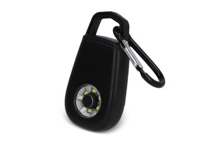 Personal safety alarm made from recycled ABS, emitting a sound of 100DB for effective alerting. Includes a carabiner for easy attachment and comes with 3 LR44 batteries. Features 6 SMD lights providing 30lm brightness with high and flash modes for added visibility.