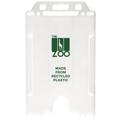 Portrait card holder made from recycled plastic. Ideal for exhibitions, workplaces, and networking events. Suitable for standard business card and credit card sized passes. Due to the nature of recycled plastic, colour shades may vary slightly, and there may be specks of colour. Made in the UK.