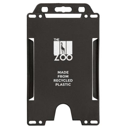 Portrait card holder made from recycled plastic. Ideal for exhibitions, workplaces, and networking events. Suitable for standard business card and credit card sized passes. Due to the nature of recycled plastic, colour shades may vary slightly, and there may be specks of colour. Made in the UK.