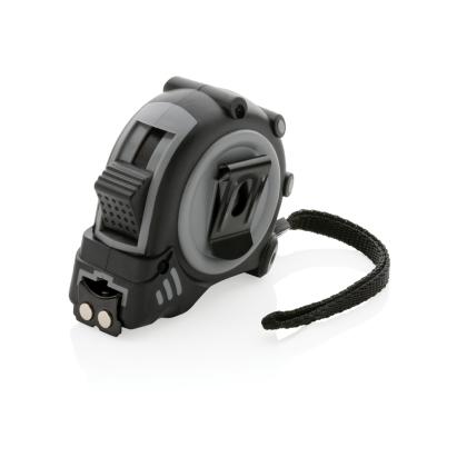 5 metre tape made with RCS (Recycled Claim Standard) certified recycled ABS. Total recycled content: 15% based on total item weight. RCS certification ensures a completely certified supply chain of the recycled materials. With deluxe TRP rubber grip for extra control. With release/hold button. With 19mm single sided tape, yellow with black carbon steel hook with two integrated magnets. With polyester wrist strap. Packed in FSC® mix kraft packaging