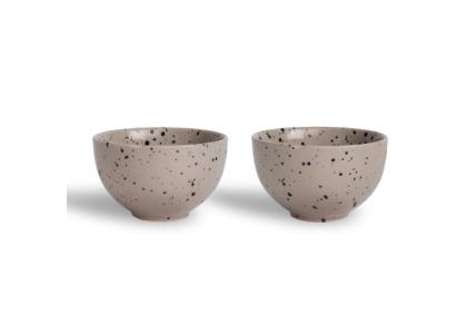 This handmade set of two medium sized bowls is ideal for snacks or cereals. The bowls have natural shades in beige/grey with a beautiful splash pattern in black. It is handmade ceramic, so the color and surface may differ per product. Each product is unique in its appearance. The Ditte series has a sleek and minimalistic design.