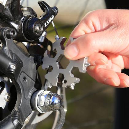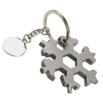 A real all-rounder for your key ring. The 18-in-1 multitool features a striking snowflake design and a high-quality processing in matt-finished. As an effective fusion of form and multifunction Snowflake is a fascinating, seasonal gift that your customers will enjoy all year round. With various Allen and hex keys, flat and Phillips screwdrivers as well as two open-ended spanners, Snowflake is a perfect tool for travelling, at home or in garages and gardens. With eighteen different functions for quick bike repairs, practical help assembling furniture, as a stylish bottle opener and much more. Customised with engraved tag and key ring included.