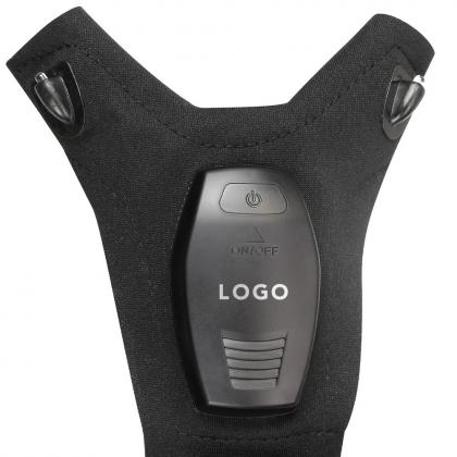 Cordless LED light gloves (1 pair) for many outdoor or indoor activities such as camping, sports, fishing as well as for repairs on the car or in the house, especially when no one is there to hold a torch. The fingerless Spot Fingers made of breathable nylon always illuminate exactly what you are working on with two powerful LED spots (each on the thumb and index finger). This keeps your hands free at all times! Flexibly adjustable to any size thanks to elastic stretch nylon and Velcro fastening. The soft cotton fleece on the inside guarantees a comfortable feel. Rechargeable via USB Type-C - charging cable included. A perfect gift for craft or sporty people with your logo print on the central control element.