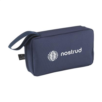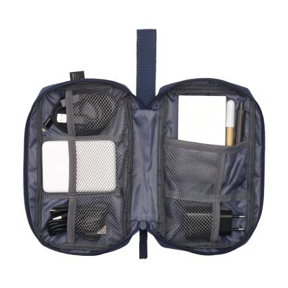 WoW! Pouch for organised and clear storage of cables, chargers and technical accessories. Made from 600D RPET polyester. The inside offers ample storage space, divided into several (mesh) compartments. With zip closure, an extra zip pocket on the exterior and a practical carrying loop. Ideal for travelling, but also handy at home or in the office. GRS-certified. Total recycled material: 88%.