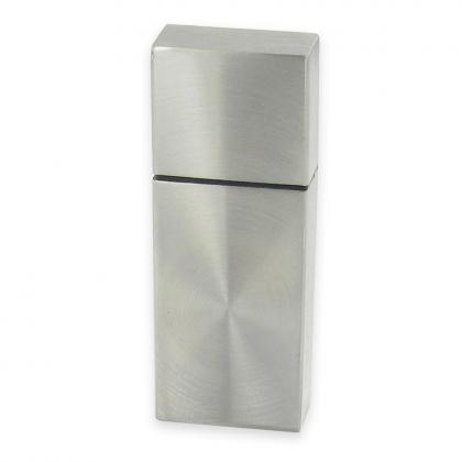 Plenty of space for your advertising! High quality , rectangular USB stick with stainless steel surface and cap .
