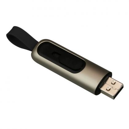 Modern USB flash drive with metal housing and practical sliding mechanism for the USB unit. The soft silicone loop can be used for example to hang it on key rings and perfectly harmonises with the metal surface. Capacity as desired, 4 - 64 GB 2.0. Customised with logo as print or engraving.