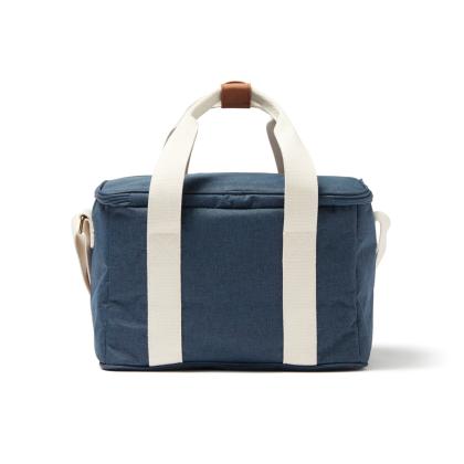 The ultimate cooler basket, mottled tone by tone with details in imitation leather and cotton. There is also a small compartment on the outside of the cooler bag, providing space for other items as well. The thick PEVA padding ensures that the cold is retained for a long time. It is also easy to clean and dry after use. Thanks to the adjustable shoulder strap and the double handle, you have several ways to carry the cooler basket.