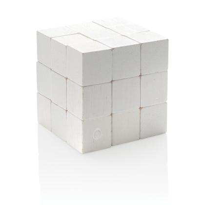 Challenge yourself with this wooden brain game! This beautiful and intriguing puzzle is made of interlocking wooden pieces that form a cube. Releasing the cube is easy, but putting it back together is a different story! The puzzle a joy to play with and ensures some brain teasing fun. The brain teaser comes in a canvas pouch for easy storage. Made with FSC®certified wood. Comes in FSC®certified kraft gift packaging.